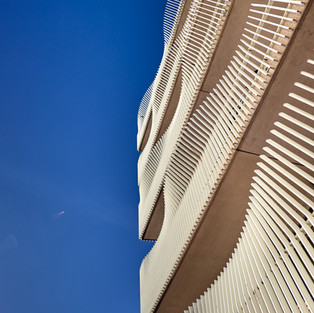 If you've missed the avocado window in fall, you are stuck with a lot of grey skies, rain and other misery. As a photography enthusiast, these are difficult times. But every now and then, there is a nice day that invites you to get your gear and go out and shoot. Today was such a day. I've had my eye on an apartment building in my neighborhood for a while now and today seemed like a good day as we had zero clouds in the sky. That blue would be a great backdrop for the main feature of the building; the balcony. It is a modest building, nothing else is fancy or noteworthy, but the design of the balcony turns this bland building into an eye-catcher. It is an example of how you can make utilitarian buildings that can still be beautiful to behold. The balcony runs across the whole facade at every floor and is built in a wave pattern. The choice of white on white emphasizes the play on form rather than color and draws the eyes to follow the flow of the wave across the building. I don't know who designed this building but whoever did - well done!